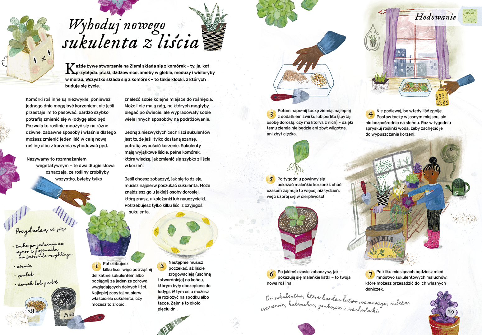 Jak samodzielnie wyhodować pędy groszku na drugie śniadanie? Z czego zbudować domek dla rodziny biedronek? Ile godzin trzeba czekać, żeby z pestki awokado wyrosło drzewko? I jakie kwiatki zasiać, żeby przyleciały do nich pszczoły?