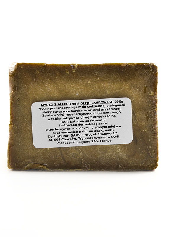 Saryane Mydło z Aleppo 55% oleju laurowego 200gMydło przeznaczone jest do codziennej pielęgnacji skóry zwłaszcza bardzo wrażliwej oraz tłustej. Zawiera 55% regenerującego oleju laurowego, a także odżywczą oliwę z oliwek (45%)Mydło Aleppo 55% przeznaczone w szczególności do skóry problematycznej, tłustej, bardzo wrażliwej i alergicznej. Zostało wytworzone z naturalnych składników: z wysokiej zawartości oleju laurowego (55%) oraz odżywczej oliwy z oliwek (45%). Posiada silne działanie regenerujące, antyseptycznie i nawilżające. Stosowane regularnie przynosi poprawę w kondycji skóry. Nie posiada sztucznych składników zapachowych. Produkt jest polecany do pielęgnacji cery trądzikowej, tłustej i mieszanej oraz z problemami skórnymi ze względu na jego właściwości regenerujące, antyseptyczne i gojące. Z uwagi na swoje właściwości zabliźniające odpowiednie jest również dla alergicznych, borykających się z chorobami takimi jak: łuszczyca, egzema, AZS. Mydło z Aleppo Saryane: nie zawiera konserwantów, parabenów i barwników, bez tłuszczów zwierzęcych, bez sztucznych dodatków zapachowych bez oleju palmowego Skład:Sodium Olivate, Laurus Nobilis Fruit Oil, Sodium Hydroxide, Sodium Chloride