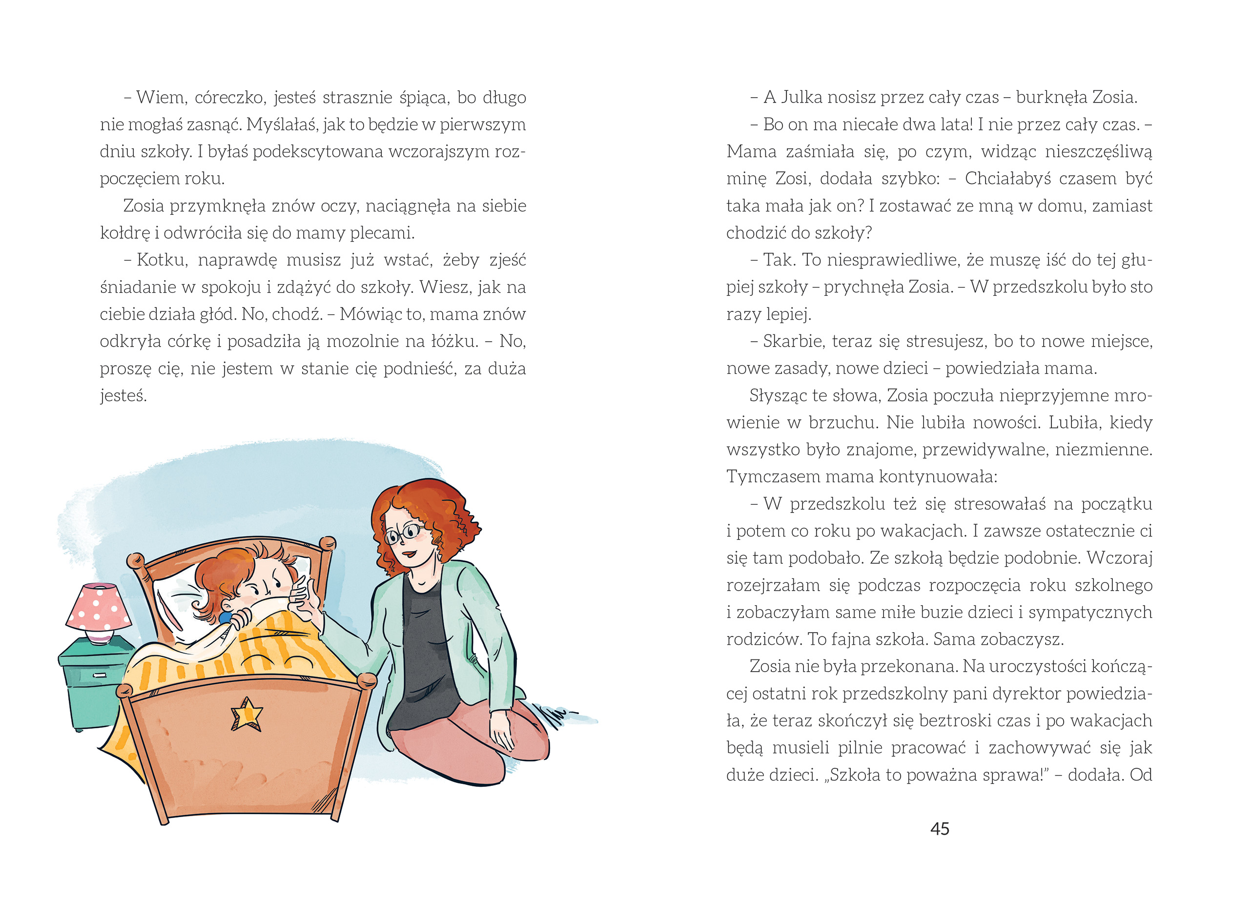 Poznaj historie, które mogą się przytrafić każdemu dziecku w wieku wczesnoszkolnym, jego rodzeństwu i opiekunom. Opowiadają o powszechnych trudnościach takich jak: - organizacja zdalnej nauki w czasie pandemii - odreagowywanie emocji po powrocie ze szkoły - niska samoocena i niechęć do odrabiania prac domowych - dokuczanie ze strony rówieśników - silne emocje i zmiana zachowania związana z graniem w gry komputerowe