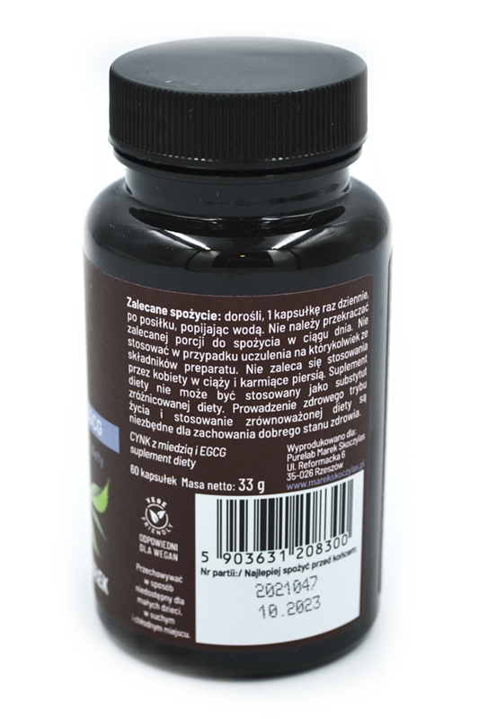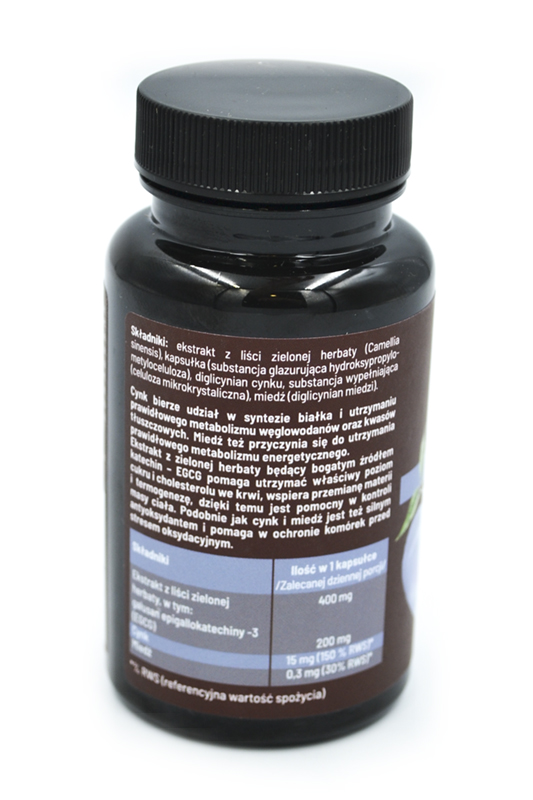 Suplement diety nie może być stosowany jako substytut zróżnicowanej diety. Prowadzenie zdrowego trybu życia i stosowanie zrównoważonej diety są niezbędne dla zachowania dobrego stanu zdrowia. Nie spożywać dziennej ilości 800 mg galusanu epigallokatechiny - 3 (EGCG) lub wyższej. Nie należy spożywać jeśli tego samego dnia spożywasz inne produkty zawierające zieloną herbatę. Niniejszy produkt nie powinien być spożywany przez kobiety w ciąży lub kobiety karmiące piersią oraz dzieci w wieku poniżej 18 lat. Nie należy spożywać na czczo.