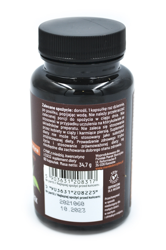 Suplement diety nie może być stosowany jako substytut zróżnicowanej diety. Prowadzenie zdrowego trybu życia i stosowanie zrównoważonej diety są niezbędne dla zachowania dobrego stanu zdrowia. Nie spożywać dziennej ilości 800 mg galusanu epigallokatechiny - 3 (EGCG) lub wyższej. Nie należy spożywać jeśli tego samego dnia spożywasz inne produkty zawierające zieloną herbatę. Niniejszy produkt nie powinien być spożywany przez kobiety w ciąży lub kobiety karmiące piersią oraz dzieci w wieku poniżej 18 lat. Nie należy spożywać na czczo.