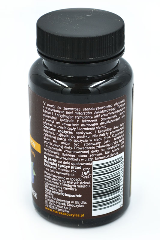 *Z uwagi na zawartość standaryzowanego ekstraktu z wysuszonych liści miłorzębu dwuklapowego (Ginkgo biloba L.) osoby przyjmujące stymulanty, leki przeciwzakrzepowe powinny skonsultować spożycie z lekarzem.