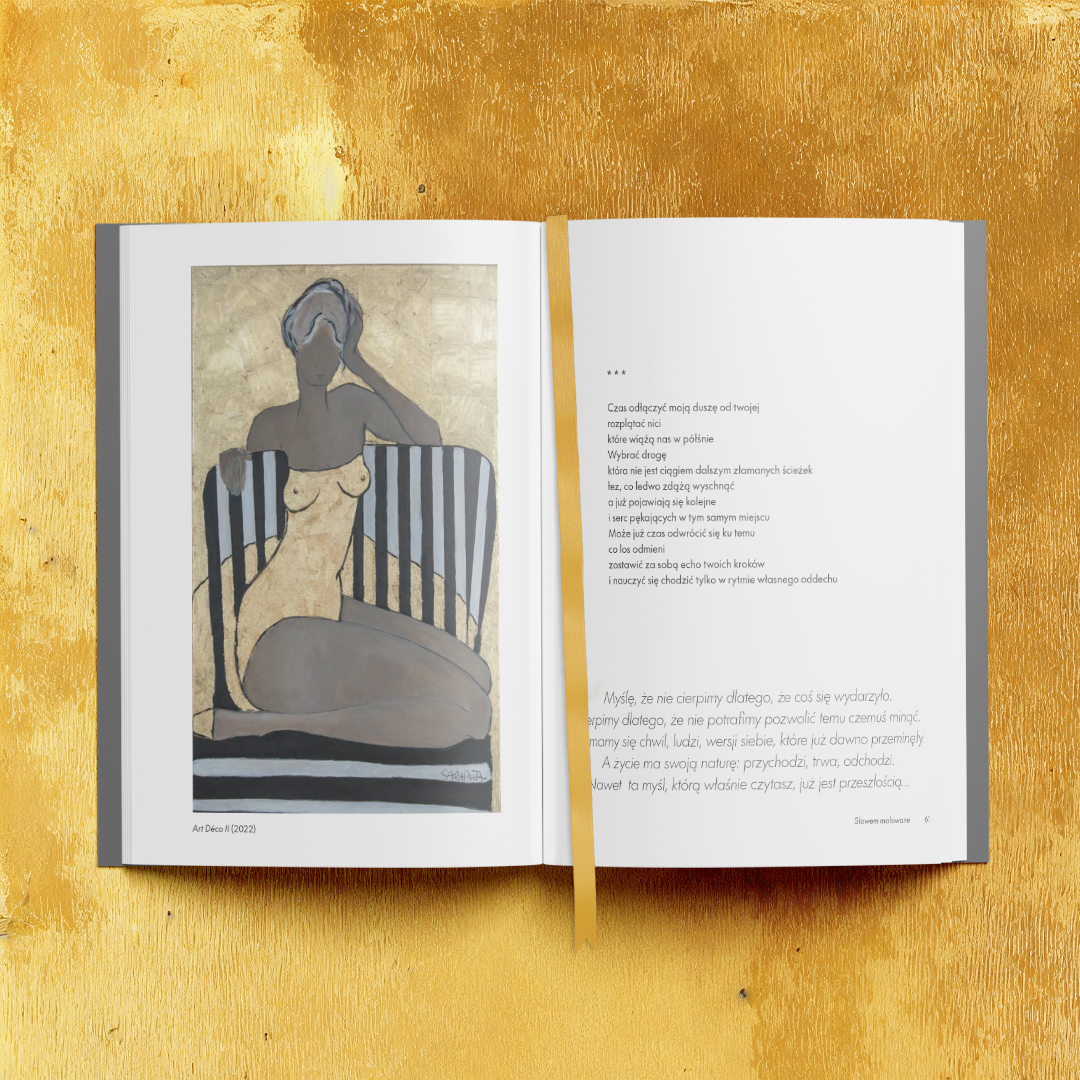 Słowem malowane” to wyjątkowy album poetycki, w którym intymne wiersze Małgorzaty Ohme spotykają się ze zmysłowym malarstwem Joanny Sarapaty. Słowo i obraz prowadzą tu dialog o kobiecości – prawdziwej, nieoczywistej, pełnej sprzeczności i światła.