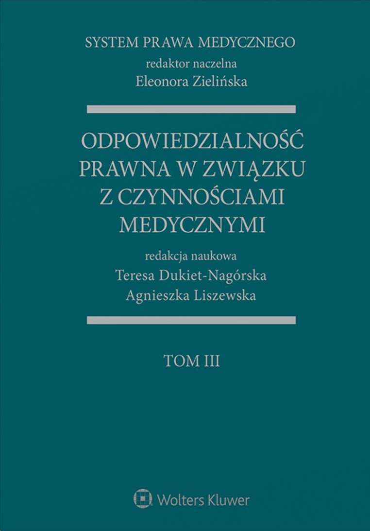 Tom III Systemu Prawa Medycznego to kompendium wiedzy z zakresu odpowiedzialności prawnej w związku z czynnościami medycznymi oraz organizacją i finansowaniem opieki zdrowotnej przez organy publiczne. Autorzy szczególnej analizie poddali charakter relacji między różnymi reżimami odpowiedzialności prawnej oraz wskazali różnice w zasadach ich funkcjonowania i stosowanych sankcjach. Rozdział I poświęcony jest poszczególnym rodzajom odpowiedzialności prawnej oraz relacjom między nimi, przy czym omówiono m.in.: