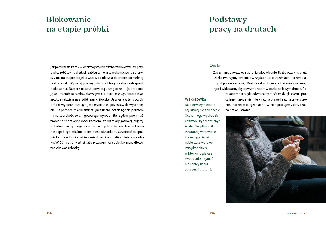 Pierwszy kompletny poradnik o tym, jak robić piękne rzeczy z włóczki! Marzysz o tym, by któregoś dnia otulić się kocem własnej roboty? Albo rano postawić stopy na wydzierganym przez siebie dywanie? A może masz już za sobą pierwsze łatwe robótki, ale brakuje ci odwagi, by iść dalej? Jeśli choć na jedno z tych pytań odpowiedź brzmi tak, ta książka jest dla ciebie. Dla Olgi Woźnickiej, autorki instagramowego bloga O Manufaktura, szydełko i druty to codzienność. Na Instagramie obserwuje ją ponad dwadzieścia tysięcy osób, które każdego dnia poznają jej pełen włóczek świat. W książce znajdziesz kilkadziesiąt projektów, które posłużą ci do stworzenia wielu użytecznych przedmiotów – od zachwycających prostotą szalików po spektakularne swetry. Będziesz w stanie zrobić z wełny wszystko, cokolwiek zechcesz, i odnajdziesz swój unikatowy styl. A przy okazji zrelaksujesz się i złapiesz oddech w pełnym stresu i gonitwy życiu. Po prostu weź do ręki szydełko lub druty i… zacznij. Olga Woźnickajest profesjonalną dziewiarkąi autorytetem dla ponad dwudziestu tysięcy osób, które obserwują jej profilna Instagramie. Pierwszy sweter zrobiła w wieku trzynastu lat. Dzisiaj na swoim koncie ma tysiące wspaniałych projektów. W wolnych chwilach uwielbia podróżować. Powyższy opis pochodzi od wydawcy.