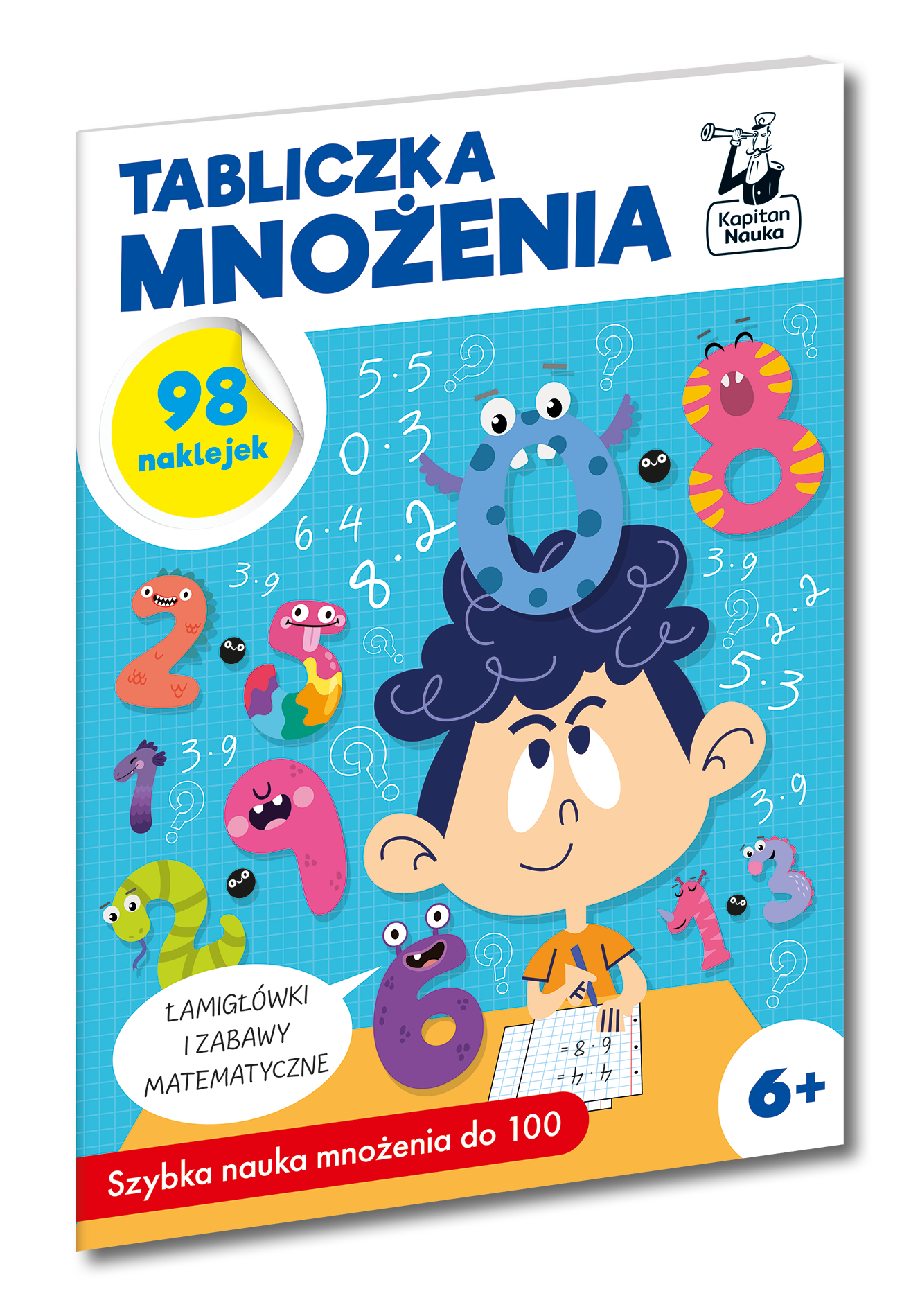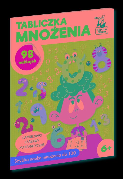 Tabliczka mnożenia to bogato ilustrowany zeszyt z łamigłówkami i zabawami matematycznymi dla dzieci rozpoczynających naukę mnożenia. Dzięki połączeniu edukacji z zabawą dzieci nabierają swobody w mnożeniu do 1 do 100 i ćwiczą liczenie - od prostych działań do trudniejszych obliczeń. W książce znajdują się różnorodne techniki ułatwiające zrozumienie zasad mnożenia i jego przemienności bez konieczności wkuwania tabliczki mnożenia na pamięć! Pomysłowe zadania i metody nauki pokazują, że mnożenia można nauczyć się na kilka sposobów. Kolorowe ilustracje oraz zabawy z naklejkami przedstawiają działania matematyczne w sposób przystępny dla dzieci. Łamigłówki doskonalą również umiejętność myślenia logicznego, trenują koncentrację i pamięć. Zostały tak przygotowane, aby matematyka kojarzyła się z ciekawym wyzwaniem - zgodnie z ideą STEM. STEM to nowe podejście do nauki zachęcające do rozwiązywania problemów metodą prób i poprawek, łącząc przy tym wiedzę z różnych dziedzin, takich jak: nauki ścisłe, nowoczesne technologie, inżynieria oraz matematyka. Kapitan Nauka to marka, która powstała dzięki rodzicom poszukującym mądrej, pełnej radości, ale i wymagającej rozrywki dla dzieci. Skupiamy się na zagadkach, grach, puzzlach i książeczkach, które uczą przez kreatywną zabawę i wspomagają rozwój dziecka. Produkty Kapitana Nauki dostosowane są do potrzeb dzieci od narodzin do 11. roku życia. Stymulują rozwój kluczowych umiejętności, takich jak koncentracja, pamięć, spostrzegawczość, myślenie logiczne, kreatywność. Są świetną alternatywą dla smartfona czy komputera, a czas spędzony przy wspólnych rozgrywkach, w gronie rodziny lub rówieśników wzmacnia więzi i umiejętności komunikacyjne. Brak recenzjix