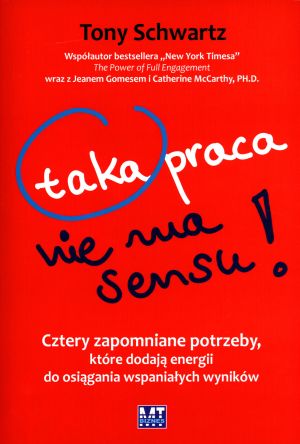 Taka praca nie ma sensu! należy do tych nielicznych książek, które mają moc dogłębnego zmieniania naszego życia zawodowego i osobistego.Wymagania przewyższają nasze możliwości. Etyka ,,więcej, szybciej"" powoduje powstawanie niewidzialnych, lecz uciążliwych kosztów, które szkodzą naszej kreatywności, koncentracji, energii i pasji. Codziennie niemal 75 procent pracowników na całym świecie czuje się nie w pełni zaangażowanych w pracę. Książka przedstawia przełomowe podejście do regeneracji życia w taki sposób, aby uzyskiwać większą satysfakcję i wydajność, zarówno w pracy, jak i poza nią.Zestawiając odkrycia wielu dziedzin nauki zajmujących się osiąganiem wysokich wyników, Tony Schwartz w przekonujący sposób argumentuje, że ignorujemy cztery podstawowe potrzeby, których zaspokajanie daje nam energię do osiągania wybitnych wyników: potrzebę równowagi (fizyczną), bezpieczeństwa (emocjonalną), samorealizacji (umysłową) i znaczenia (duchową). Najlepiej funkcjonujemy nie wtedy, gdy przed długi okres pracujemy na wysokich obrotach, jak komputer, lecz gdy regularnie przechodzimy od zużywania do regenerowania energii związanej z każdą z tych czterech potrzeb.Organizacje przeszkadzają w osiąganiu optymalnych wyników, bo ciągle wymagają coraz więcej. Tymczasem powinny raczej starać się zaspokajać cztery podstawowe potrzeby ludzi, aby codziennie uwalniać i rozniecać w nich wszystko co najlepsze.W oparciu o szeroką współpracę z takimi instytucjami, jak Google, Ford, Sony, Ernst & Young, Shell, IBM, Los Angeles Police Department i Cleveland Clinic, Schwartz kreśli mapę ukazującą drogę do nowych sposobów pracy. Na poziomie osób indywidualnych wyjaśnia, w jaki sposób tworzyć codzienne rytuały, które intensywny wysiłek równoważą regularną regeneracją, wyczerpanie emocjonalne niwelują ćwiczeniami zapewniającymi większą odporność, krótkotrwałe skupienie na najpilniejszych sprawach zamieniają w myślenie bardziej kreatywne i strategiczne, a krótkowzroczne zaangażowanie w doraźne wyniki zastępują przestrzeganiem wartości prowadzącym do wyższego dobra. Na poziomie organizacyjnym przedstawia nowe praktyki, kierunki działania i przekazy kulturowe, które z powodzeniem wykorzystują jego klienci.Książka daje instytucjom, liderom i osobom indywidualnym praktyczne, sprawdzone strategie lepszego radzenia sobie z coraz większymi wymaganiami, z jakimi mamy do czynienia w tym coraz bardziej skomplikowanym świecie.