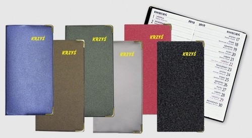 Wymienne kalendarium miesięczne, miejsce na notatki, podwójne imiona, skrócone kalendarium roku bieżącego oraz następnego, a także telefony kierunkowe i notes teleadresowy.
