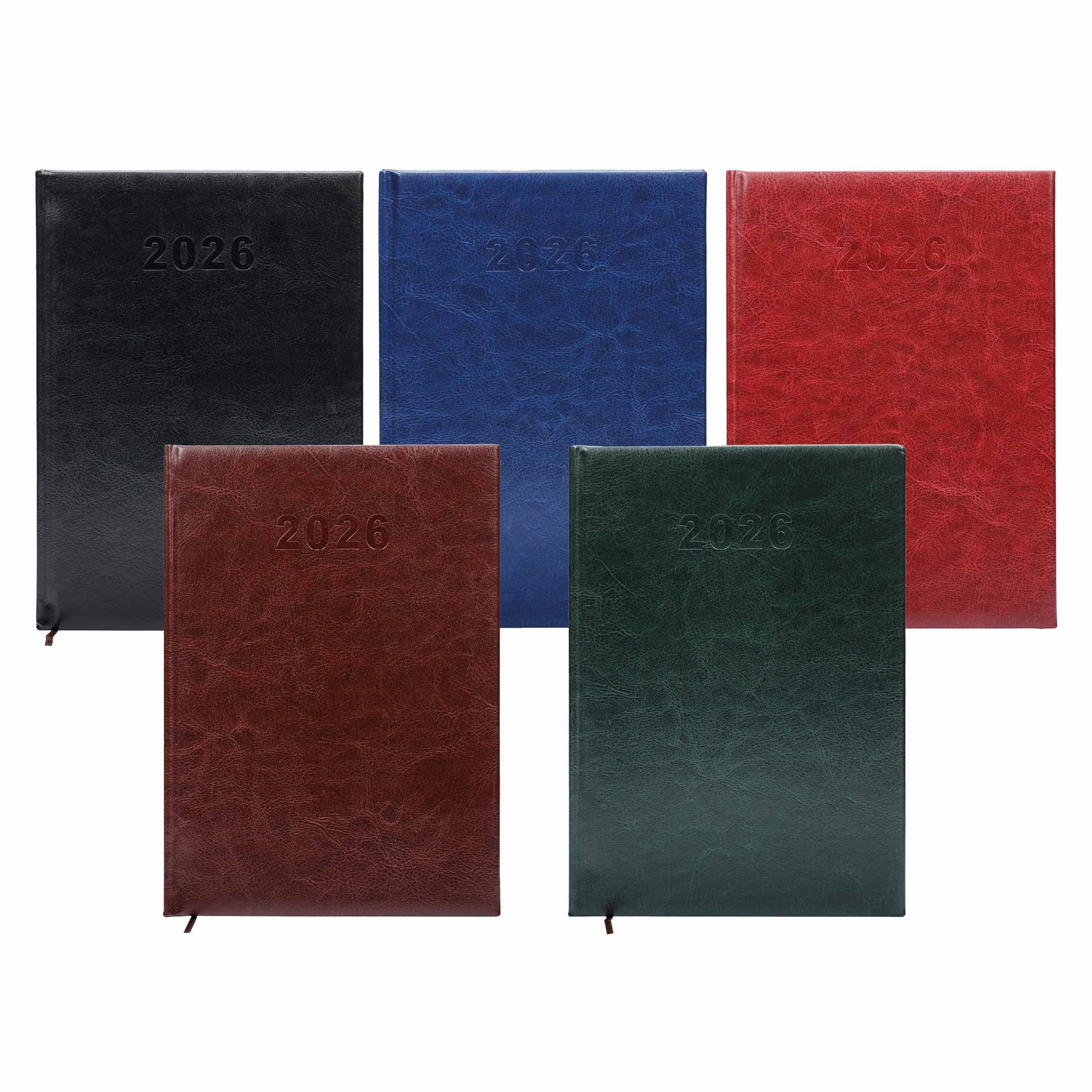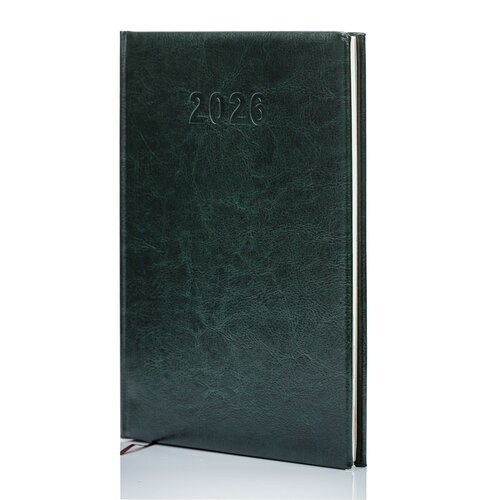 - Format A5 (140x207x22 mm) - Ilość stron: 112 - Dostępne kolory: czarny, granatowy, bordo, zielony, brąz - Oprawa: twarda skóropodobna + gąbka - Układ środka: dzień na stronie (tydzień na 1 stronie, druga strona cała na notatki) - Wewnątrz tasiemka do oznaczania stron ułatwia odnajdywanie ważnych notatek lub ostatnio zapisanej strony - Papier: 70 g/m2 w kolorze ecru - Kalendarium: w języku polskim, angielskim, numeracja dni i tygodni, podwójne imieniny - Część informacyjna: strony na notatki, telefony kierunkowe, skorowidz alfabetyczny, daty imienin i Świąt.