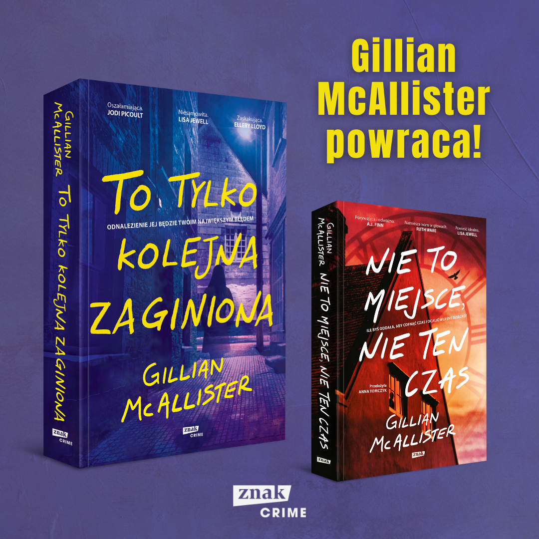 25,99zł Cena detaliczna:   49,99 zł Najniższa cena z ostatnich 30 dni: 25,99 zł NOWY THRILLER AUTORKI BESTSELLERU "NIE TO MIEJSCE, NIE TEN CZAS" ODNALEZIENIE JEJ BĘDZIE TWOIM NAJWIĘKSZYM BŁĘDEM Dwudziestodwuletnią Olivię po raz ostatni widziano na nagraniach z monitoringu, gdy wchodziła do ślepej uliczki, z której nigdy już potem nie wyszła. Julia, która zajmuje się sprawą zaginięcia dziewczyny, sądzi, że wie, czego się spodziewać. Zna tego typu przypadki. Z jednej strony zrozpaczona rodzina Olivii i nieubłaganie uciekający czas, a z drugiej - szansa, że osoba stojąca za porwaniem popełni jakiś błąd. Nie wie jednak, że ten, kogo ściga, zna jej najbardziej skrytą, najpaskudniejszą tajemnicę. Życie jej męża i córki zależeć będzie od tego, aby Julia nie tylko nie znalazła Olivii, ale też wrobiła kogoś innego w jej morderstwo. Jeśli Julia znajdzie zaginioną, straci wszystko, co kocha. Podczas czytania był taki moment, że zerwałam się z miejsca i krzyknęłam ze zdumienia. Przeczytacie tę książkę jednym tchem, gwarantuję. JODI PICOULT Gillian McAllister już po raz kolejny przeszła samą siebie w tej rewelacyjnie zaplanowanej i skonstruowanej powieści kryminalnej wypełnionej po brzegi niesamowitymi zwrotami akcji i pięknie wykreowanymi postaciami. Po prostu fantastyczna. LISA JEWELL Brak recenzjix