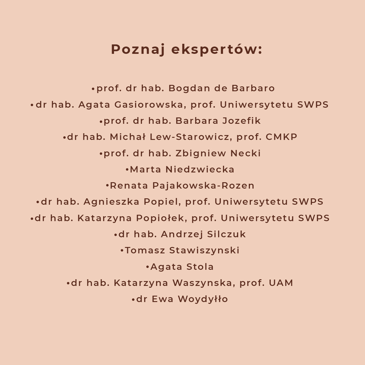 I przysięgam , że nie opuszczę cię, aż do wyjścia z kumplami na piwo, uciekania w pracę i telefonu od mamusi, której trzeba pomóc. Obiecuję być dla ciebie oparciem w chwilach słabości i dzielić się szczęściem w momentach triumfu. Zawsze będę patrzył w tym samym kierunku co ty. O ile zaczniesz nadążać za moimi pasjami, poglądami i stylem bycia. Kiedy dochodzi do złamania normy partnerskiej - zdrady? Nie tylko wtedy, gdy ktoś w związku ma kochanka czy kochankę. Czasem "tym trzecim" jest... czyjaś wielka pasja, teść lub teściowa, pieniądze, a nawet poważna choroba. Te elementy mogą do pewnego momentu być dla relacji budujące, ale często mogą ją też zaburzać. Sięgnij po pierwszą na polskim rynku książkę napisaną przez psychoterapeutę i seksuologa doktora Roberta Kowalczyka, dziennikarkę i pisarkę Magdalenę Kuszewską oraz 14 wybitnych ekspertów, naukowców i terapeutów, którzy omawiają najczęściej pojawiające się problemy związkowe. Dzięki niej zrozumiesz, czym jest trzeci element i nauczysz się, jak sobie z nimi radzić, aby zbudować mocny, trwały i dobrze komunikujący się związek. Brak recenzjix