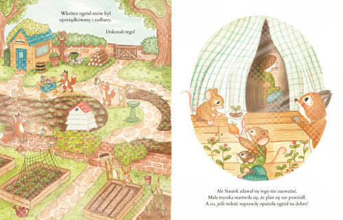 Historia ukazuje losy pary staruszków, Staszka i Marii, dla których ogród był źródłem dumy i radości. Gdy Maria trafia do szpitala, Staszek zostaje sam, a ogród powoli zaczyna podupadać. Czy mieszkające tam zwierzęta zjednoczą siły, aby przywrócić mu dawny blask? To niezwykła lektura, która w prosty sposób porusza temat emocji i pokazuje, jak ważne są empatia, troska i współpraca.
