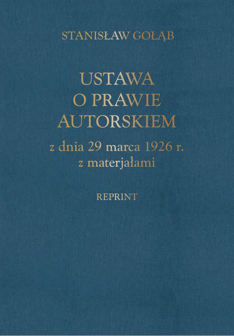 Publikacja jest reprintem dzieła Stanisława Gołąba pt. "Ustawa o prawie autorskiem z dnia 29 marca 1926 z materjałami" wydanego w 1926 r. nakładem Wydawnictwa im. Kasy Mianowskiego. Dzięki lekturze książki współcześni czytelnicy mogą poznać przebieg prac nad tym aktem prawnym. Opracowanie wyróżnia się edytorsko na tle innych, współcześnie wydawanych książek. Oddano ducha tamtych lat poprzez zastosowanie płóciennej, szlachetnej oprawy oraz nawiązano do dawnej szaty graficznej i liternictwa. Dzieło S. Gołąba precyzyjnie dokumentuje przebieg prac nad ustawą. Szczególnego odnotowania wymaga udział w nich ówczesnych luminarzy prawa i wybitnych praktyków, a także ogromna wszechstronność i krytycyzm. Zwraca szczególną uwagę kompetencja uczestników dyskusji, wyrażająca się biegłą znajomością nie tylko potrzeb i uwarunkowań, lecz także stanowisk przyjmowanych w innych państwach, doświadczeń płynących z obcej praktyki oraz uwarunkowań międzynarodowych, a przede wszystkim krytyczne poszukiwanie optymalnych rozwiązań. Odnotowania wymaga także precyzja w sposobie relacjonowania przebiegu dyskusji i stanowisk wyrażanych w jej toku przez uczestników, zwłaszcza jeśli idzie o jednoznaczność i umiejętność koncentrowania relacji z prowadzonych debat na kwestiach istotnych. Joanna Sieńczyło-Chlabicz, Jan Błeszyński - fragment słowa wstępnego Brak recenzjix
