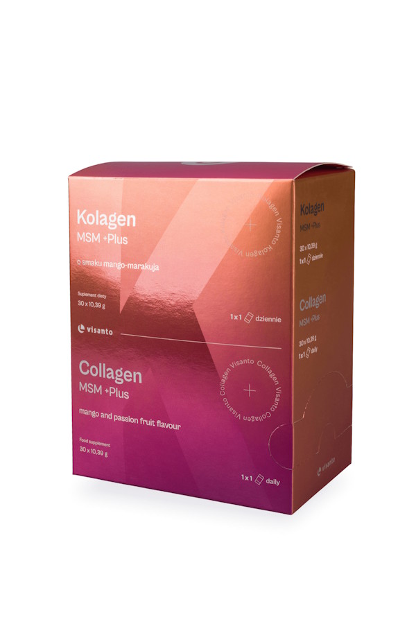 Wartości odżywcze Visanto Zięba Kolagen MSM +PLUS o smaku mango z marakują 30 saszetekSuplement diety WYPRODUKOWANO W POLSCE
