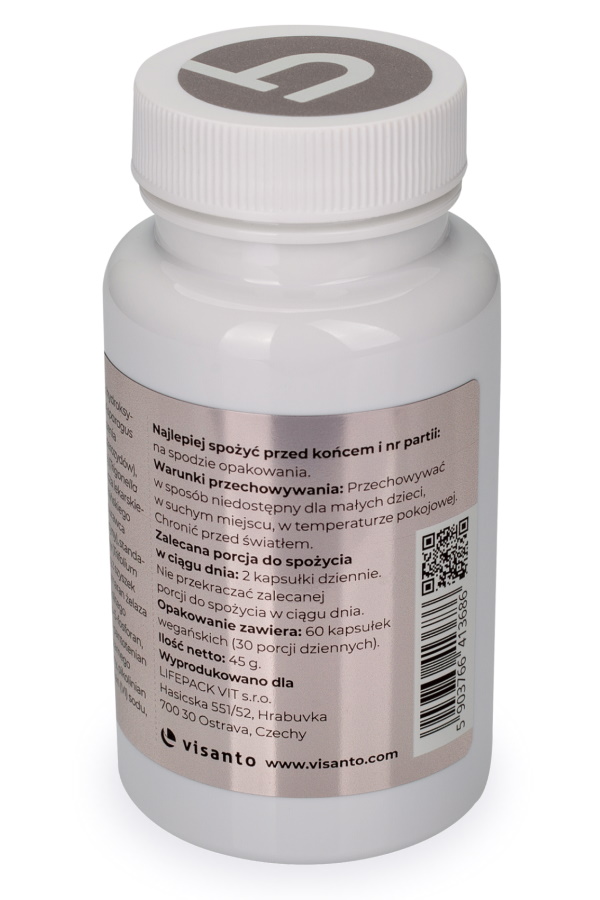 Opakowanie zawiera: 60 kapsułek wegańskich (30 porcji dziennych).