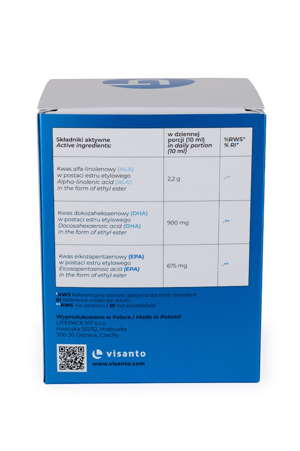 To suplement diety o skoncentrowanej zawartości trzech najważniejszych dla organizmu człowieka kwasów tłuszczowych z grupy OMEGA 3 (EPA, DHA, ALA). Zawarte w preparacie kwasy tłuszczowe omega występują w unikalnej formie monocząsteczek (estrów etylowych).