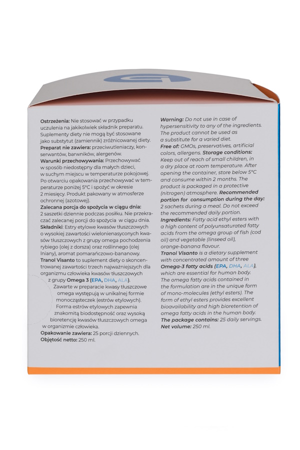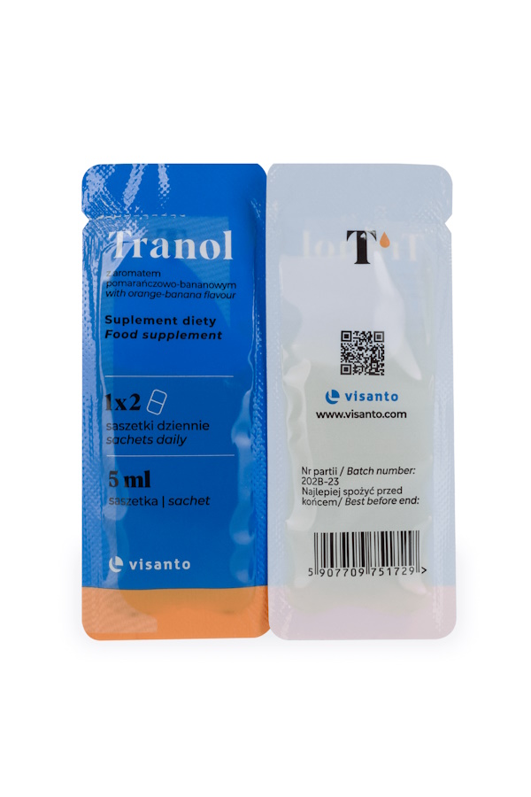 Wartości odżywcze Visanto Zięba Tranol z aromatem pomarańczowo-bananowym 50 saszetekSuplement diety WYPRODUKOWANO W POLSCE