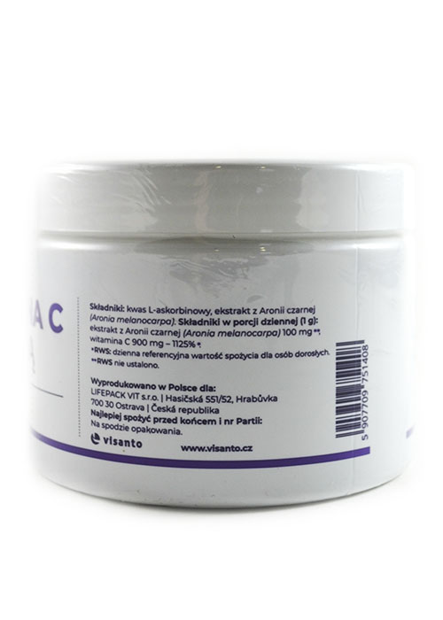 Visanto Zięba Witamina C z aronią 500gNaturalna Witamina C z aronią, zawierająca naturalny skład, bezpieczny dla alergików.Sposób użycia: