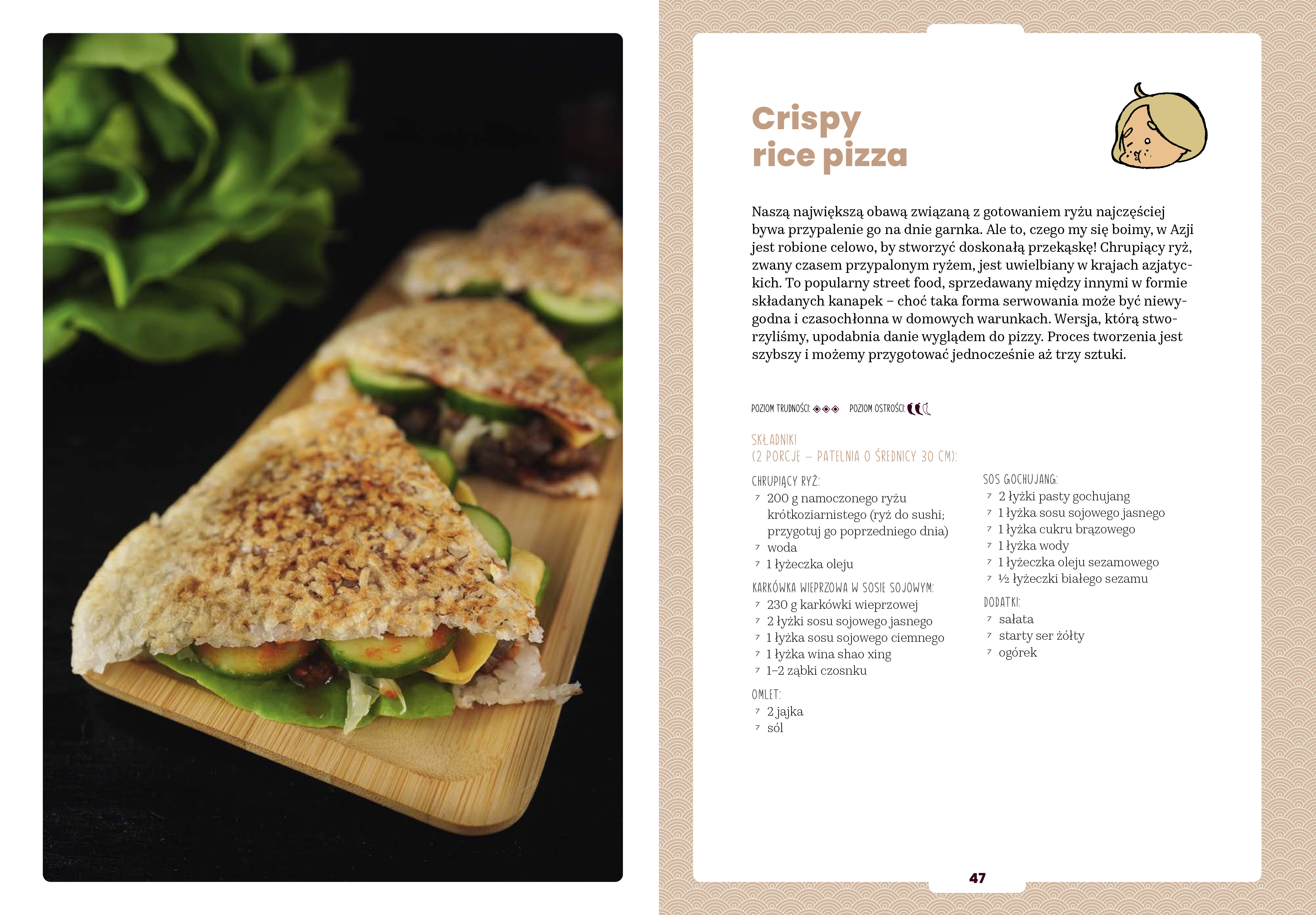 Chcesz przygotować doskonały egg fried rice, przyrządzić kurczaka w sosie słodko-kwaśnym jak z „Chińczyka” czy zjeść tradycyjne japońskie mochi? Nic prostszego! Zanurz się z nami w kuchni azjatyckiej i poznaj nieograniczone możliwości, jakie daje ryż! Nauczymy cię wykorzystywać go na dziesiątki sposobów – na śniadania i kolacje, na ostro i na słodko, na zimno albo na gorąco. W sushi, kolorowych bowlach albo koreańskim bulgogi – niech przestanie być nudnym dodatkiem, a stanie się głównym bohaterem! Zatem już dziś wyrusz z nami w kulinarną podróż – wypłucz ryż i do dzieła! * Beata i Tetsu to miłośnicy azjatyckich smaków i kuchni z Dalekiego Wschodu. Na swoich profilach w mediach społecznościowych dzielą się przepisami i kulinarnymi trikami na pyszne dania inspirowane między innymi kuchnią japońską, koreańską, wietnamską czy chińską. Ich filmy i zdjęcia pokazują krok po kroku, jak przygotować aromatyczne potrawy w domowym zaciszu. Tetsu to mieszanka dwóch kultur – jest w połowie Japończykiem, w połowie Polakiem. Urodził się w malowniczym Sanjo, w prefekturze Niigata w Japonii, a edukację zdobywał w Polsce. Razem z Beatą od lat tworzą zgrany zespół i dzielą się z odbiorcami swoją pasją do gotowania, zachęcając do eksperymentowania w kuchni i odkrywania nowych smaków. Brak recenzjix