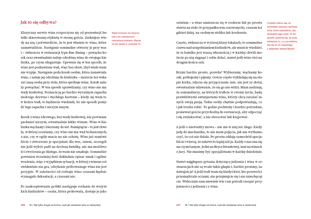 Nie ukrywam tego, że zapoznając, się z przekazem zamieszczonych informacji w rozdziałach można pozwolić sobie na poczucie humoru, gdyż autorzy starają się, aby czytelnik mógł towarzyszyć im w tej niezwykłej podróży, która jest im bliska dotycząca win oraz innych trunków.