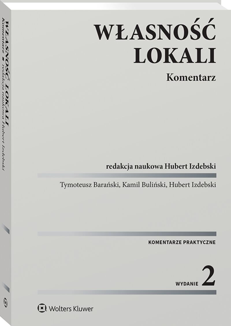 W komentarzu w ujęciu praktycznym przedstawiono najważniejsze zagadnienia uregulowane ustawą o własności lokali. Dokładnej analizie poddano najczęściej występujące problemy związane z takimi kwestiami, jak: ustanowienie własności lokalu, prawa i obowiązki właścicieli lokali czy zarząd nieruchomością wspólną. Autorzy omówili problemy istotne dla praktyki stosowania przepisów i w tym celu szeroko wykorzystali nie tylko najnowsze orzecznictwo Sądu Najwyższego, sądów powszechnych oraz sądów administracyjnych, lecz także własne doświadczenia zawodowe w tej dziedzinie. W drugim wydaniu szczególną uwagę zwrócono na nowelizację z 10.12.2020 r. (ustawa o zmianie niektórych ustaw wspierających rozwój mieszkalnictwa) zmieniającą sytuację części wspólnot mieszkaniowych, które otrzymały nowe kompetencje wraz ze zmianą statusu. Modyfikacja tych przepisów znacznie ułatwiła ich funkcjonowanie i podejmowanie decyzji we wspólnocie. Publikacja jest przeznaczona dla radców prawnych, adwokatów, notariuszy oraz sędziów. Zainteresuje również pracowników administracji zajmujących się gospodarką nieruchomościami, deweloperów, zarządców i administratorów budynków mieszkalnych, a także właścicieli lokali. Brak recenzjix