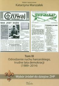 Działalność i historia Związku Harcerstwa Polskiego (ZHP) są tematem licznych opracowań, są to zazwyczaj:wspomnienia harcerek i harcerzy, drużyn, kręgów;syntetyczne opracowania poszczególnych okresów dziejów organizacji;wybory źródeł dziejów ZHP obejmujące fragment jego działalności.Na rynku księgarskim dostępne są także wznowienia książek harcerskich z dawnych lat, wśród których wyróżnia się seria opracowana przez Oficynę Wydawniczą Impuls pod hasłem Przywrócić Pamięć. Brak jest w moim odczuciu opracowania, które zawierałoby zbiór oryginalnych źródeł dotyczących dziejów ZHP, od chwili powstania stowarzyszenia do czasów współczesnych. Dlatego podjęłam próbę opracowania Wyboru źródeł do dziejów ZHP, ujętego w trzech tomach. Opublikowanie niniejszych źródeł ma na celu udostępnienie szerszemu gronu czytelników materiałów dostępnych jak dotąd nielicznym. Chciałabym w ten sposób ułatwić zainteresowanym osobom studia nad dziejami ZHP, poprzez samodzielną lekturę i własną interpretację zgromadzonych dokumentów.W niniejszym opracowaniu umieściłam źródła odnalezione podczas kwerend przeprowadzonych w latach 20052014 w zasobach Archiwum Akt Nowych w Warszawie (AAN); Biblioteki i Archiwum Muzeum Harcerstwa w Warszawie (MH); w Bibliotece Uniwersytetu Warszawskiego (UW); Wojewódzkiej Bibliotece Publicznej im. Hieronima Łopacińskiego w Lublinie; w Bazie Internetowych Systemów Aktów Prawnych ISAP; stronach internatowych ZHP, oraz we wcześniejszych publikacjach zwartych zawierających źródła.Na niniejszy Wybór źródeł do dziejów ZHP składają się następujące tomy:pierwszy Utworzenie ogólnopolskiego ZHP i czas próby (19181944), składający się z dwóch części Utworzenie i rozwój ogólnopolskiego ZHP (19181939) oraz Czas próby (19391944);drugi Walka, sowietyzacja, odwilż, kryzys i upadek (19441988) składający się z trzech części Walka o kształt harcerstwa (19441947); Sowietyzacja harcerstwa (19481955); Odwilż, harcerstwo w socjalizmie, kryzys i upadek (19561988);trzeci Odrodzenie, lata demokracji (19892014), stanowiący część szóstą.Okresy omówione w poszczególnych częściach zostały wyodrębnione w oparciu o periodyzacje historii harcerstwa Olgierda Fietkiewicza, Mariana Miszczuka i Bogusław Śliwerskiego.